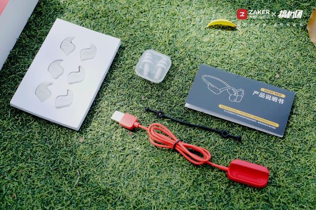 包裝里除了骨傳導(dǎo)耳機(jī)外,還有無線充電底座、3對音質(zhì)增強(qiáng)器、1對耳塞、1個松緊調(diào)節(jié)器、及1本說明書。