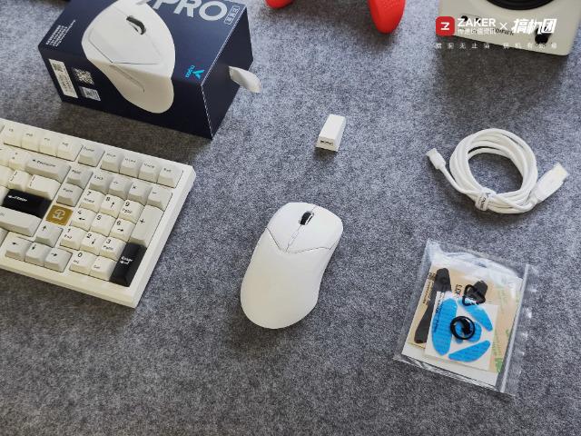 拉開帶有提手的外層包裝,內部還有一個天地蓋的包裝設計,確保在運輸過程中不會受到損壞。包裝內的配件比較多,包括電源數據線、備用更換腳貼、USB轉接器、側裙防滑貼和按鍵防滑貼等,配件確實是挺多。