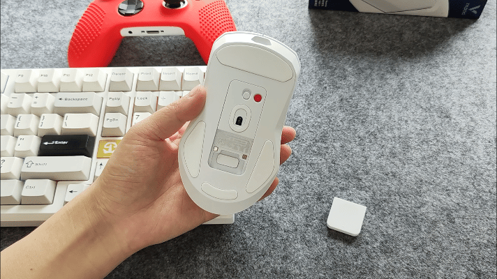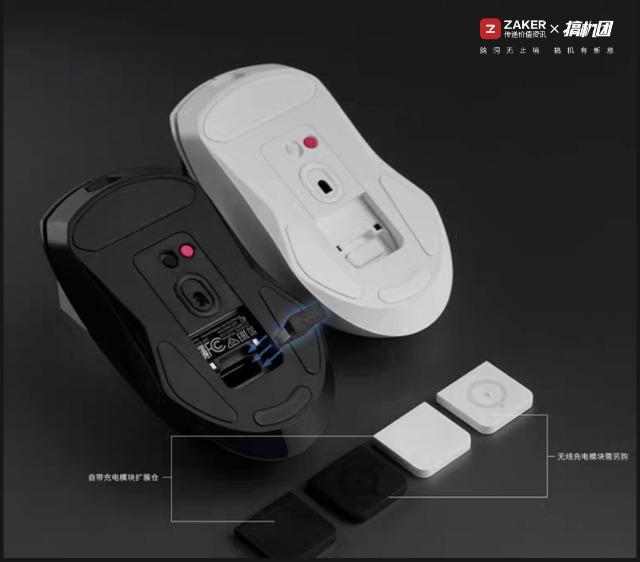 鼠標設有隱藏式磁吸收納倉,避免接收器丟失,磁吸蓋還可以替換為充電模塊擴展倉,無線充電模塊需要另外加購哦。