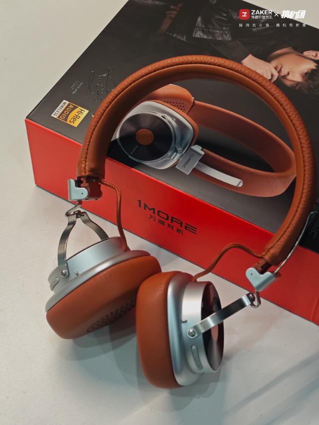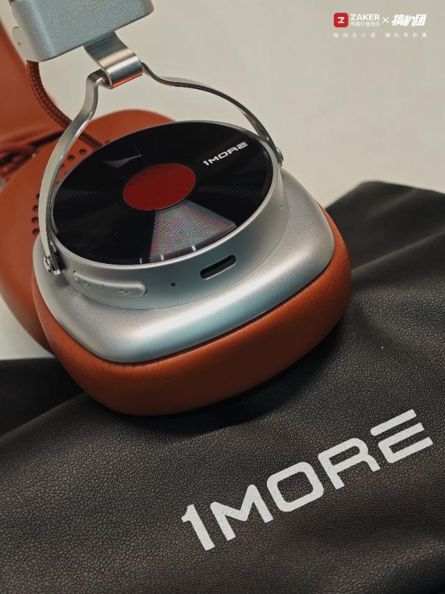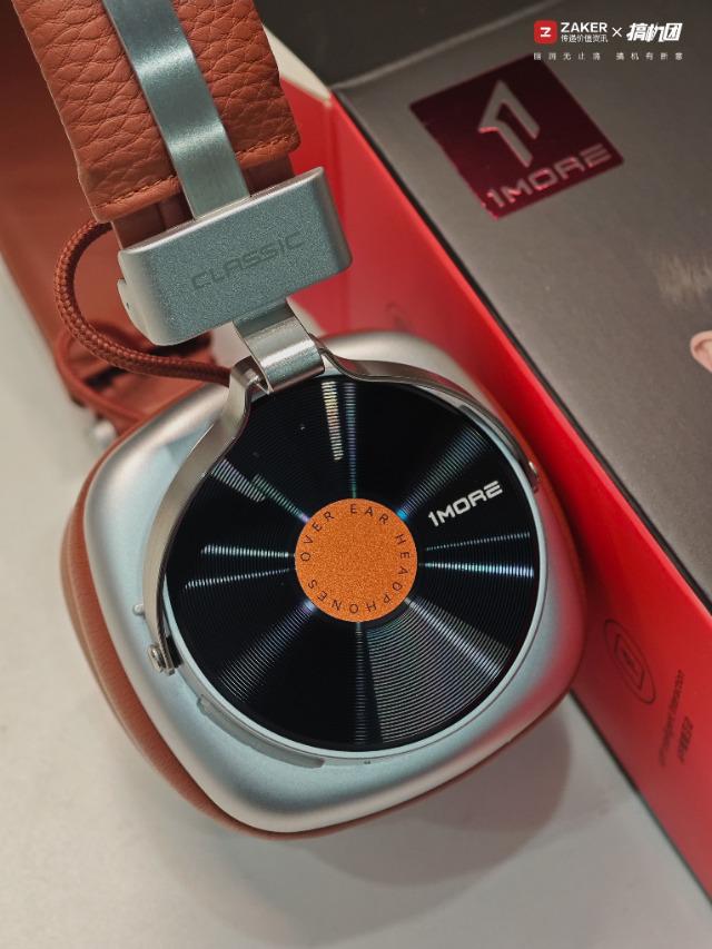 1MORE HQ36的設計是這款的最大亮點,也是我購入的最大原因,本體采用復古皮革+黑膠唱片作為設計元素,我選擇的是棕色版本,相較傳統黑白配色,棕色皮革更顯質感,頭梁和耳罩為棕色皮質包裹,耳罩外部類似于一個黑膠唱片集,加上磨砂打磨的銀色金屬裝飾,整體質感非常好。